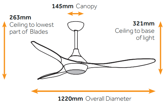 26.3cm ceiling to blade drop