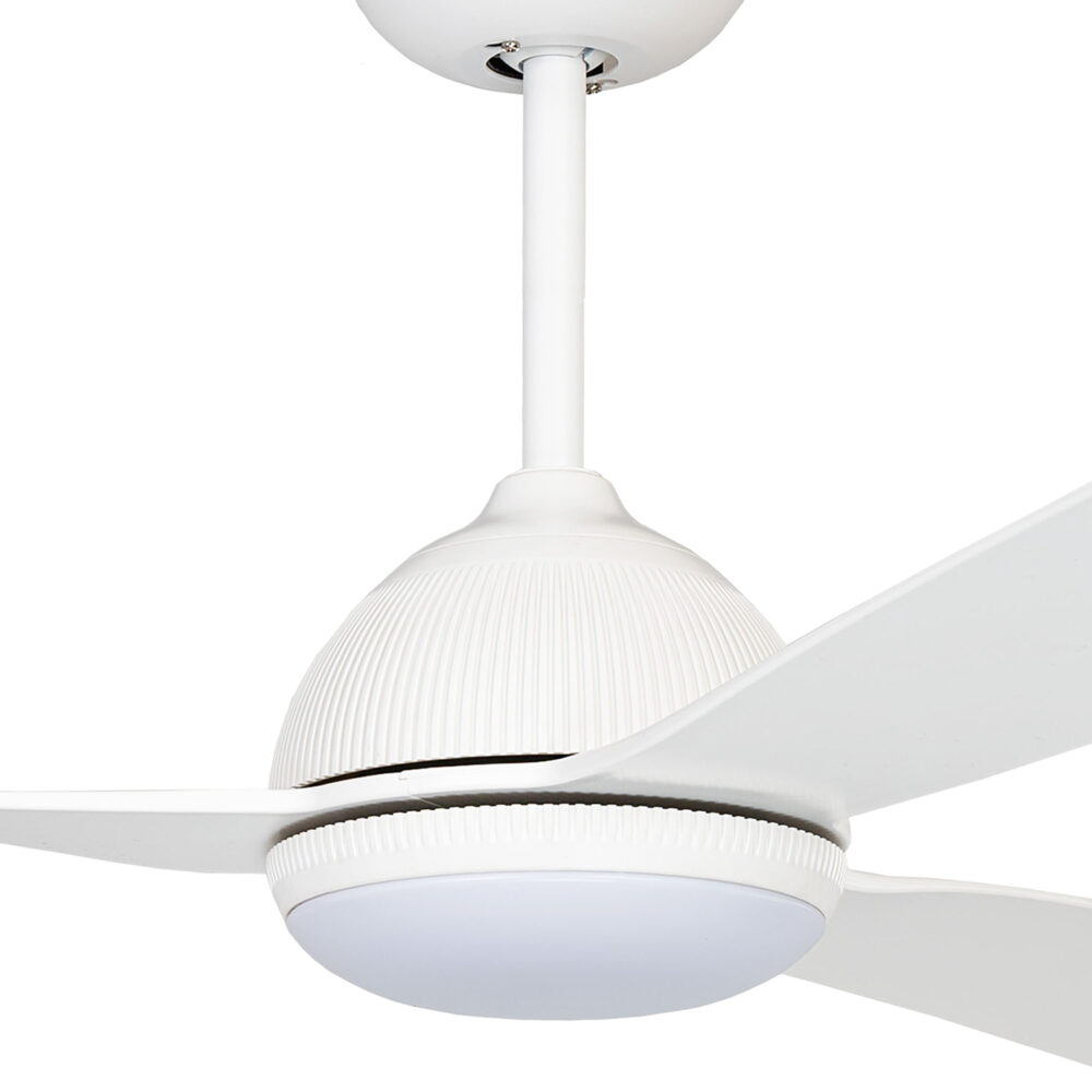 Enhance your home's style and comfort with the Claro Groove ceiling fan. This sleek 132cm fan features a distinctive grooved design that adds a touch of modern elegance to any space. Available in two sophisticated finishes – white or white and natural timber look blades – the Claro Groove seamlessly blends style and functionality. Its energy efficient DC motor delivers quiet and efficient airflow, while the six adjustable speed settings allow you to customise the breeze to your preference. The integrated LED light provides bright illumination, eliminating the need for additional fixtures. The included no-beep remote control offers convenient access to all features and makes it ideal for bedroom use. This fan has been awarded the Choice Recommended Product 2025, solidifying its status as a top choice for homeowners seeking both style and reliability.